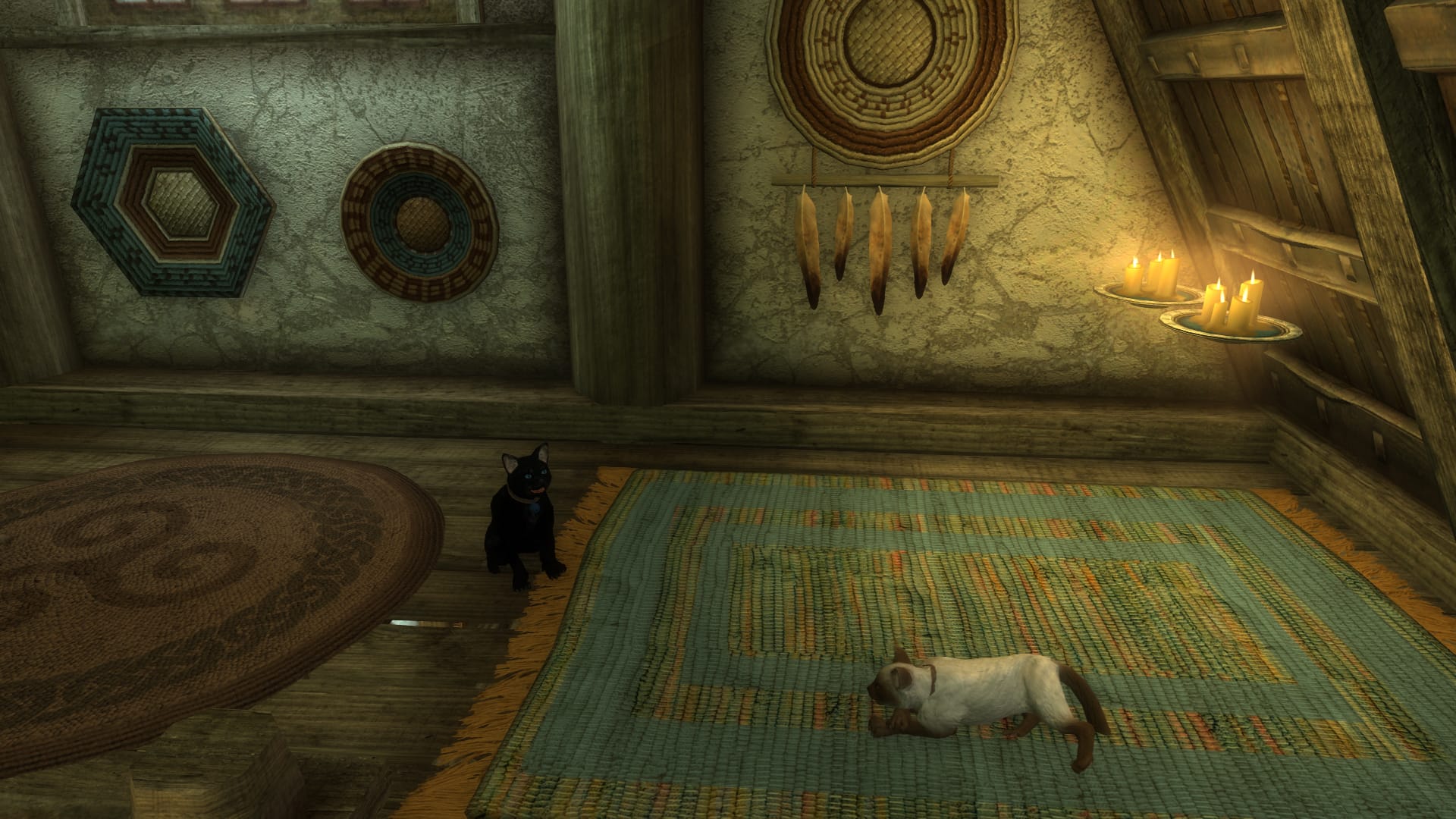 Cultures all over Tamriel have long been ruled..er… amused by cats. These fuzzballs of amazing are known for their hunting prowess on farms by keeping pesky mice out of the food grain, or a cuddle companion on those frigid Skyrim nights. When you travel through Skyrim you will encounter cats all over.