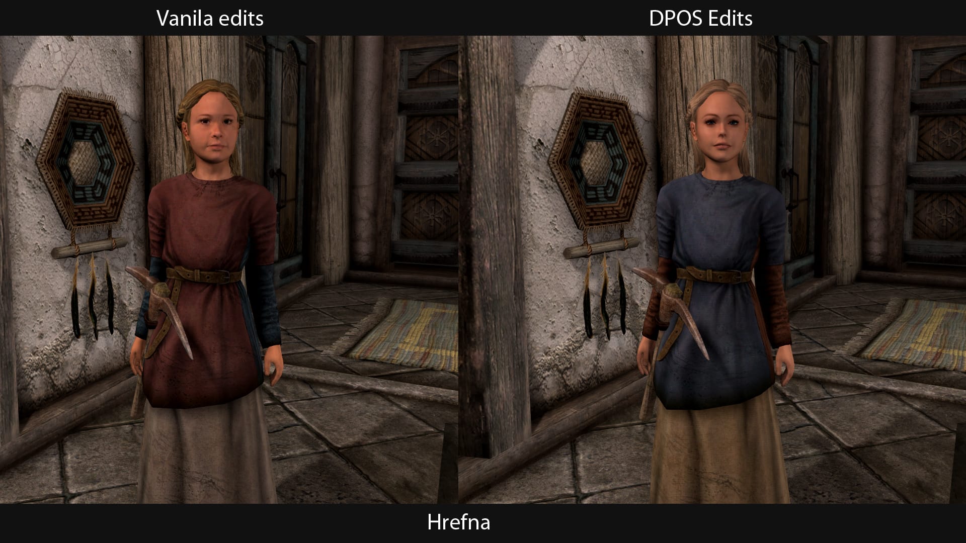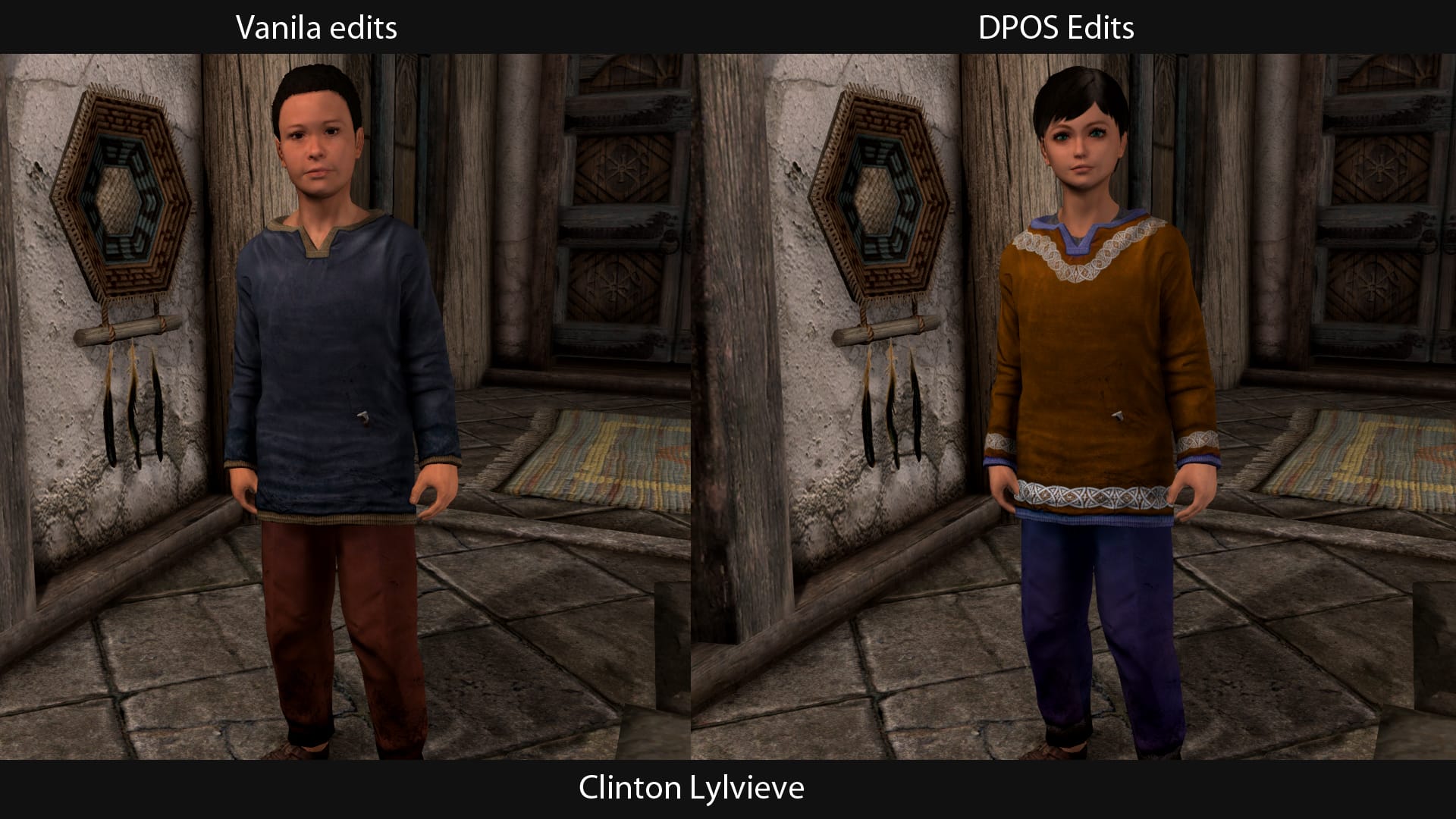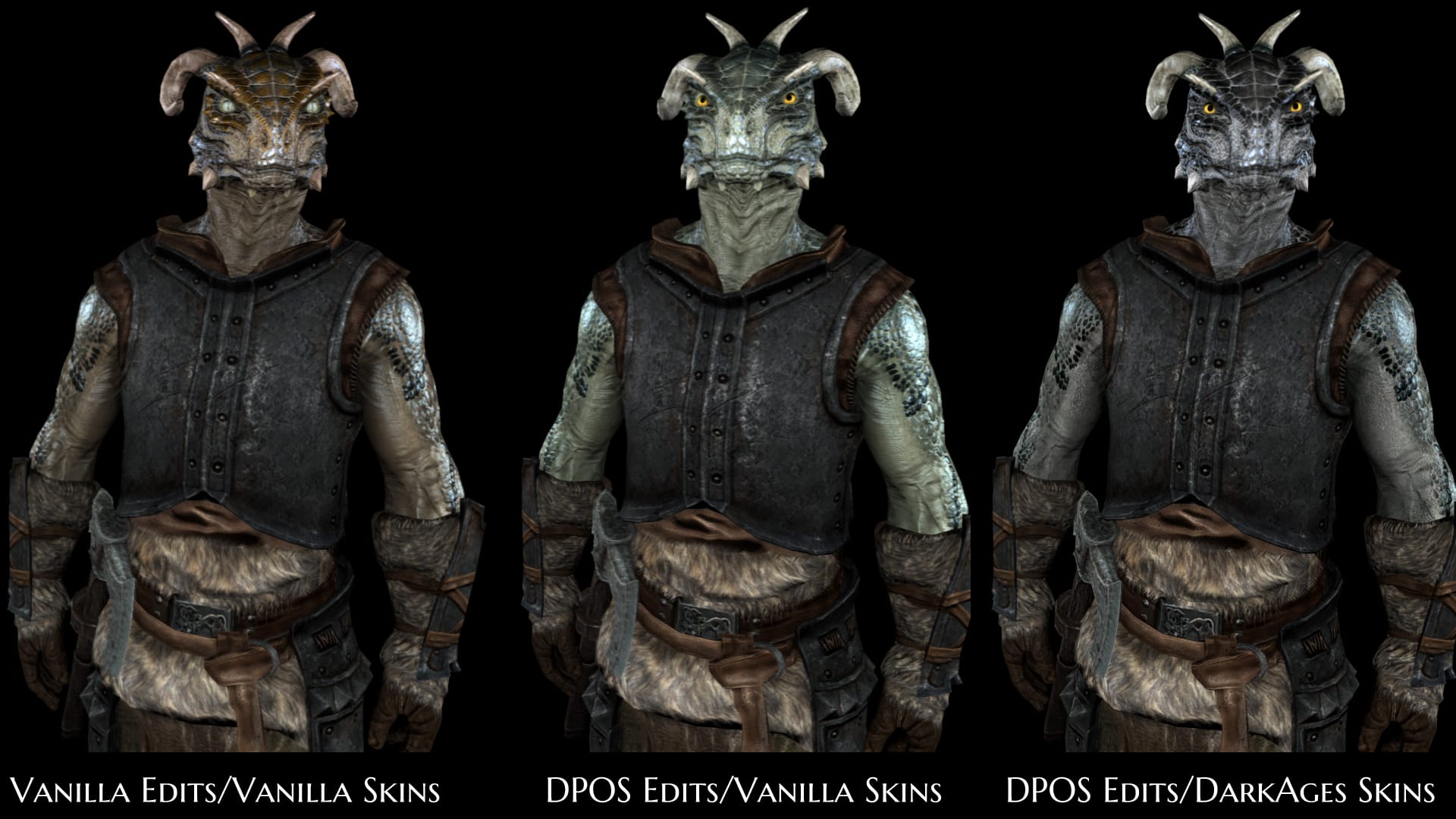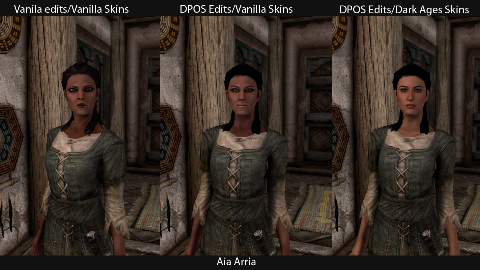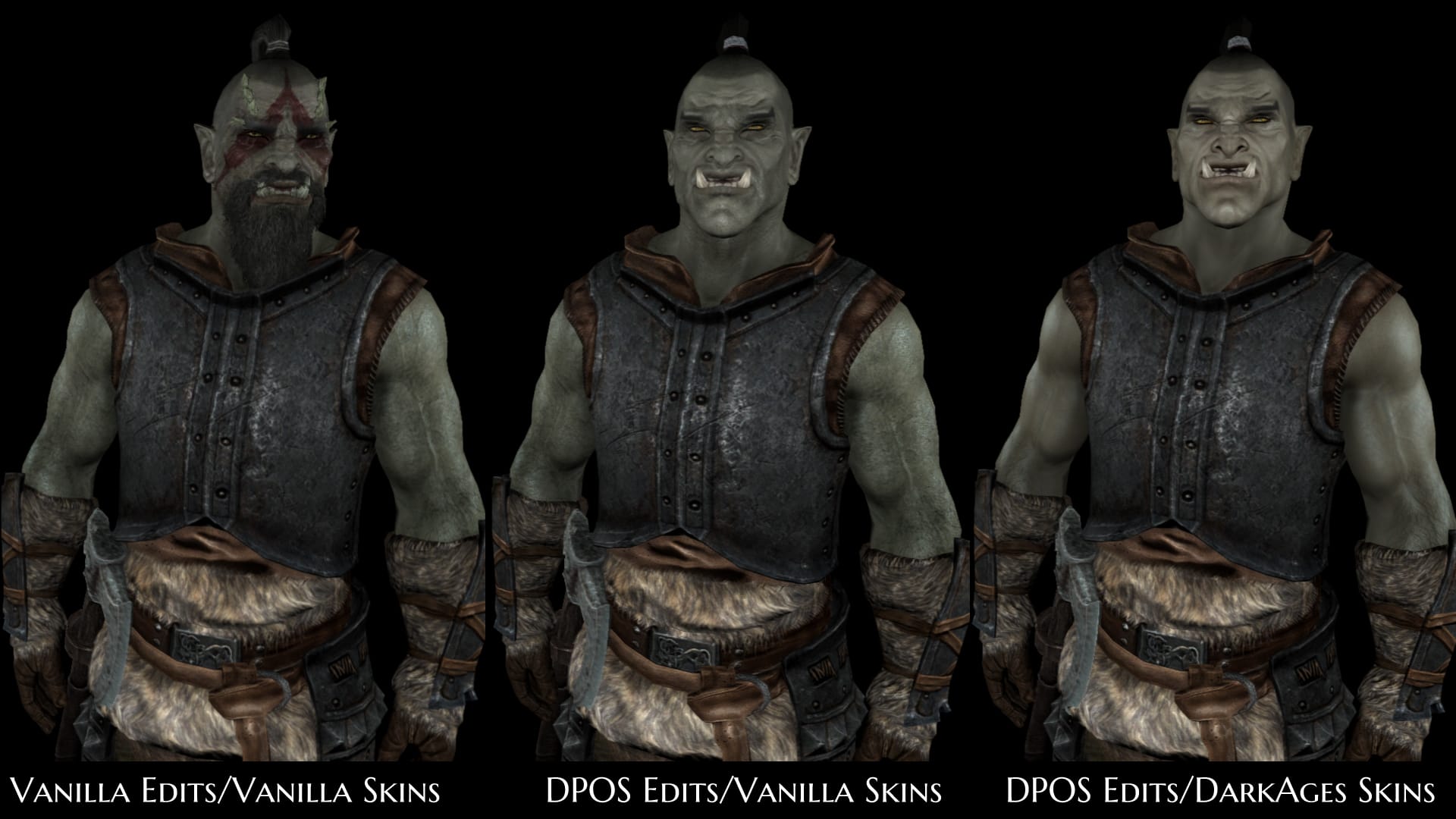 In the galleries below there are showcases of what DPOS does with or without skins. The vanilla skins are very opaque and so dirty it’s hard to get a grasp on your actual options. Dark Ages Skins was chosen to display the range of options due to the fact it offers zero pixelation and faux smudges so you can get a visual idea of how your character can look. As always: DPOS contains no skin textures itself.